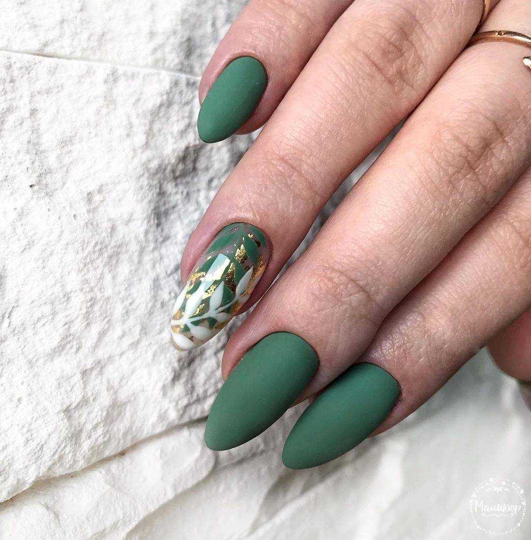 Матовый зеленый маникюр — вариант, который подойдет, если однотонное глянцевое покрытие кажется слишком обыденным, а нейл-арт с рисунками и узорами вы не любите. Чтобы получить оригинальный результат, достаточно иметь в своем бьюти-арсенале матовый «финиш»