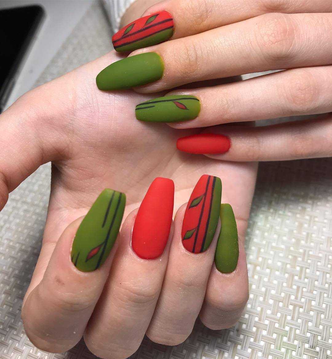 Новогодний маникюр: сочетание зеленого, красного и желтого тонов (с фото)