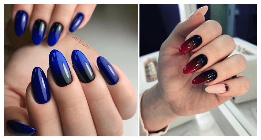 А вот с синей палитрой можно создать очень удачные дизайны в стиле омбре или градиент. Пользуйтесь правилом — холодные тона сочетать с холодными, теплые с теплыми.