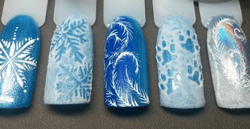 16 дизайнов голубого новогоднего маникюра на 2024 год