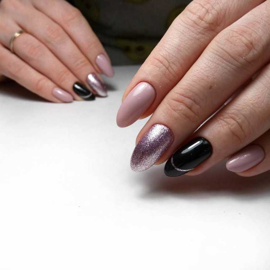 Для создания черного элегантного образа в новый год, в качестве дополнения к образу стоит сделать черный маникюр с блестками. Они делают дизайн интересным и праздничным. Черный фон используется для разных техник нейл-арта, к примеру для покрытия лаком кошачий глаз, чтобы цвет не плешивел и выглядел насыщенно.