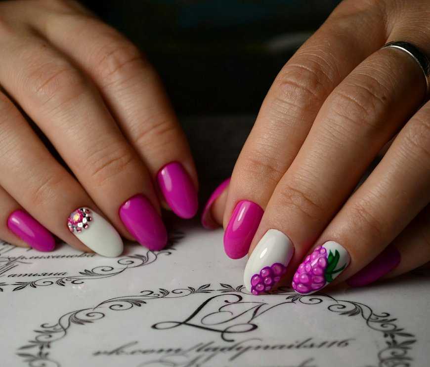 Всегда в моде розовый. Чрезвычайно женственный цвет в сочетании с миндальной формой придаёт очень свежий и нежный вид маникюру. Для более яркого эффекта можно использовать малиновый или арбузный тон.