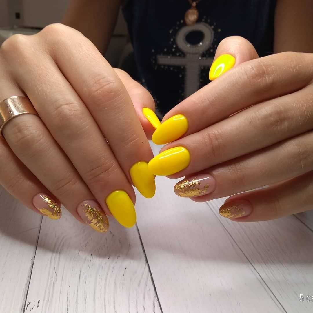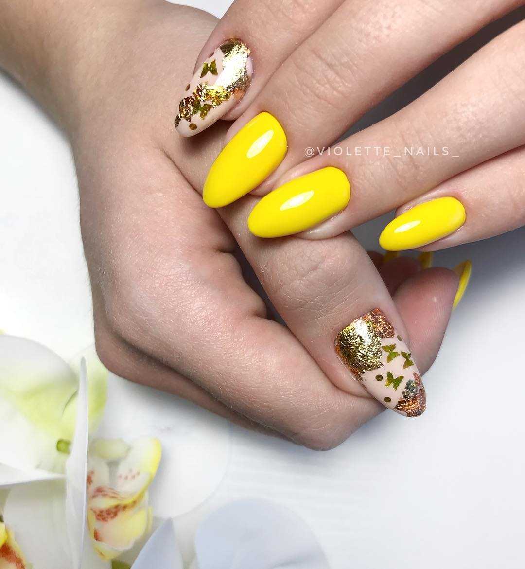 Желтые ногти с фольгой