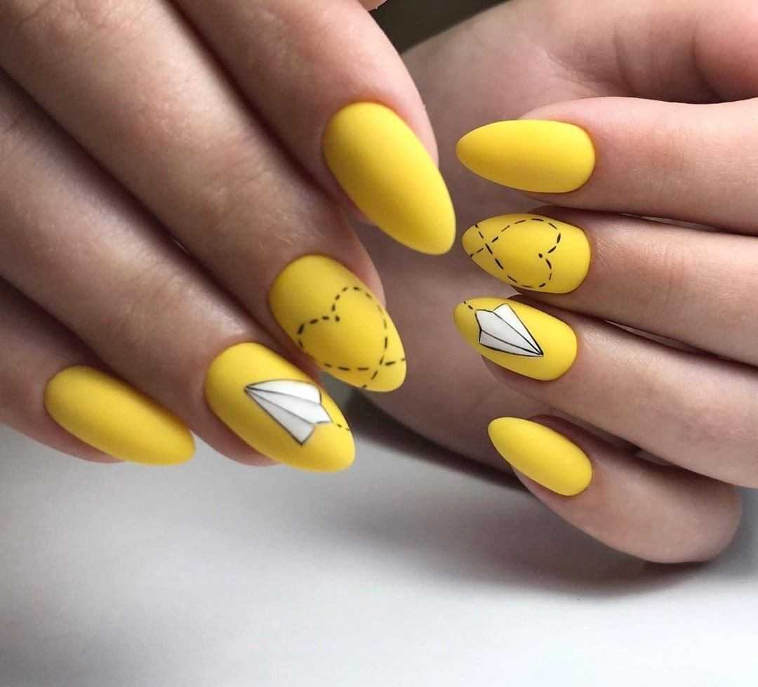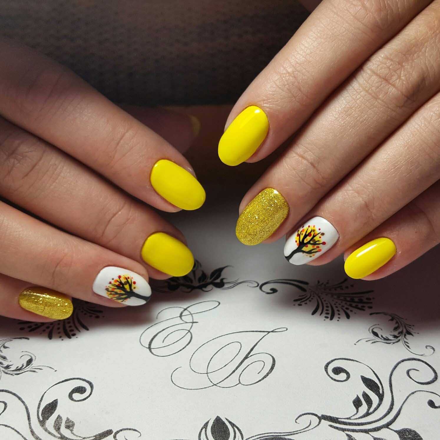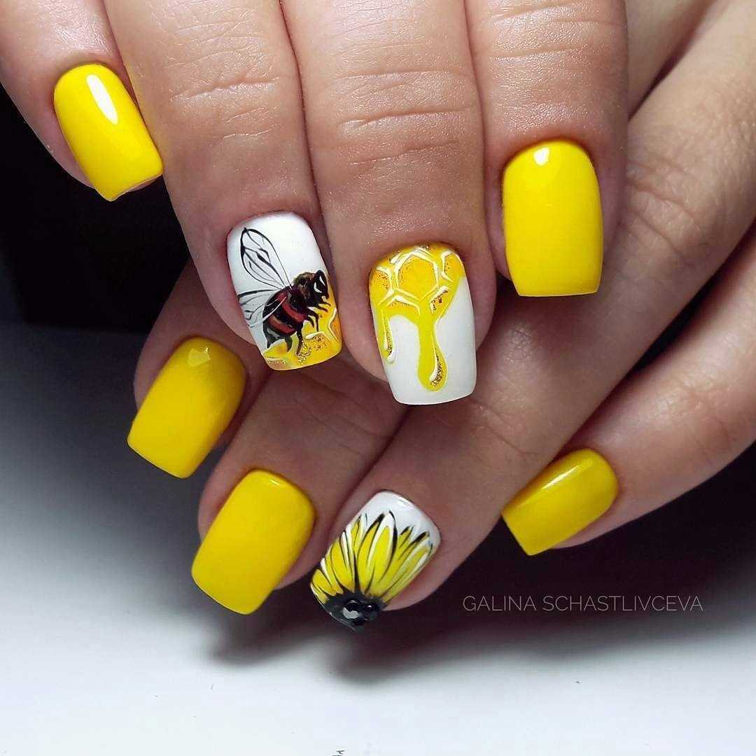 Желтый маникюр с дизайном