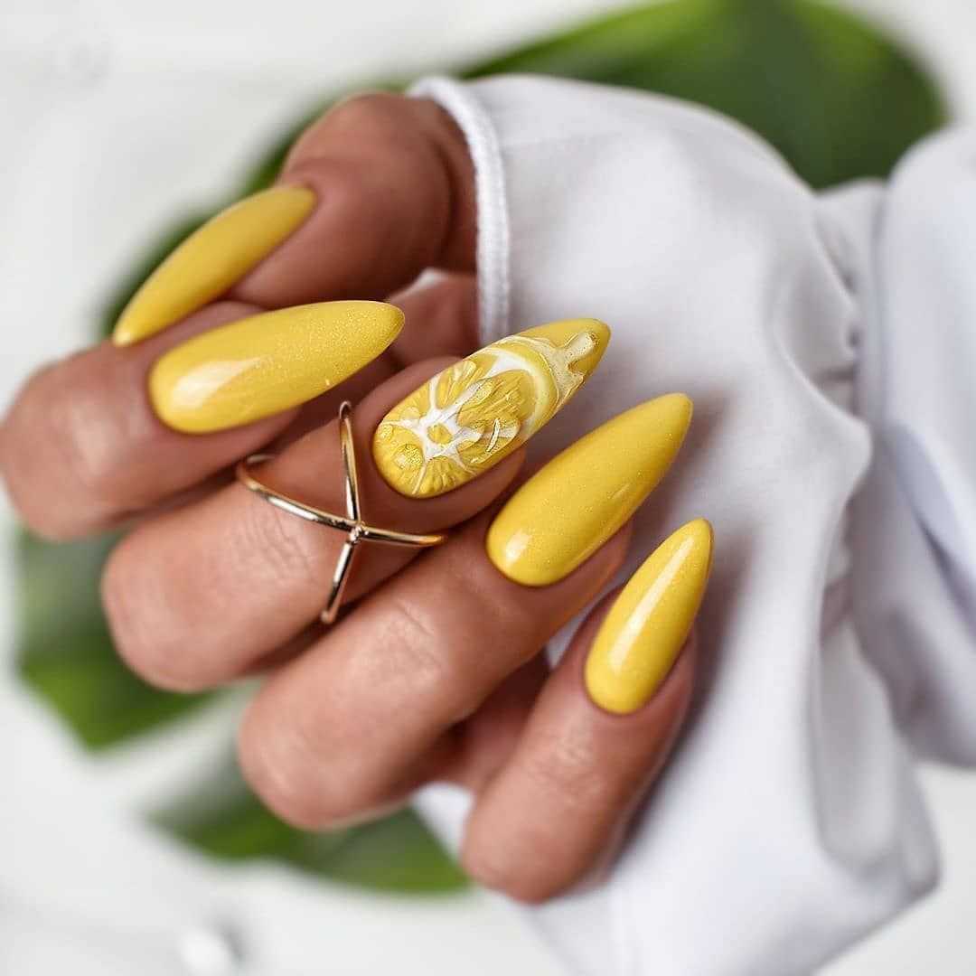 Как видите, желтый маникюр – это тренд лета. Вы можете создавать дизайн по предложенным фото, который будет соответствовать вашему темпу жизни.