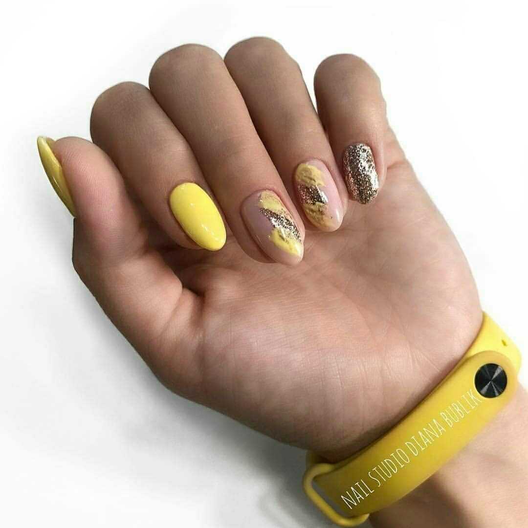Желтые ногти с пигментами