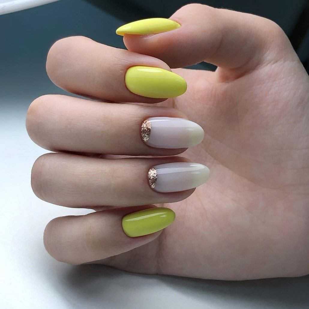 Обратите внимание на фото желтого маникюра с холодным сочетанием оттенков