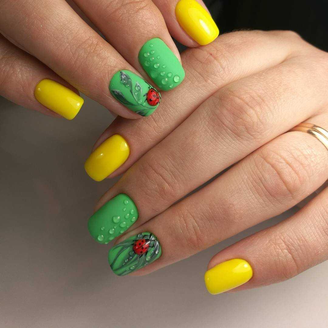 Несмотря на то, что в летнем маникюре желтого цвета приветствуется большое количество декора и акцента, если у вас очень короткие ноготки, все же стоит ограничить себя в «полете фантазий» двумя-тремя акцентами. Если ногти чуть отросшие, то уже можно смело экспериментировать.