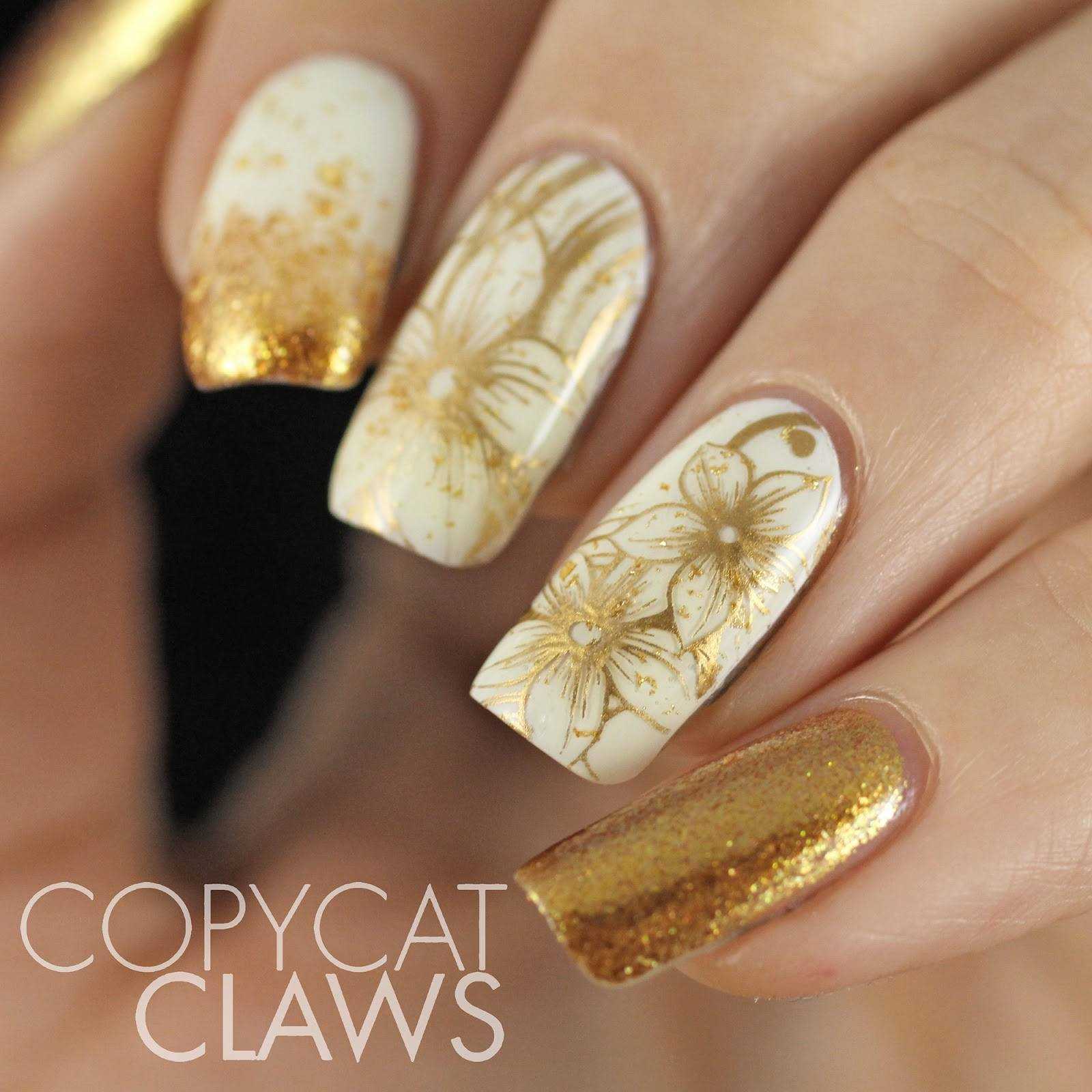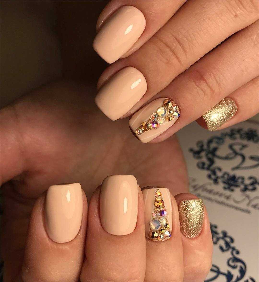 - Для получения роскошного и богатого маникюра следует использовать элементы золотистого цвета.