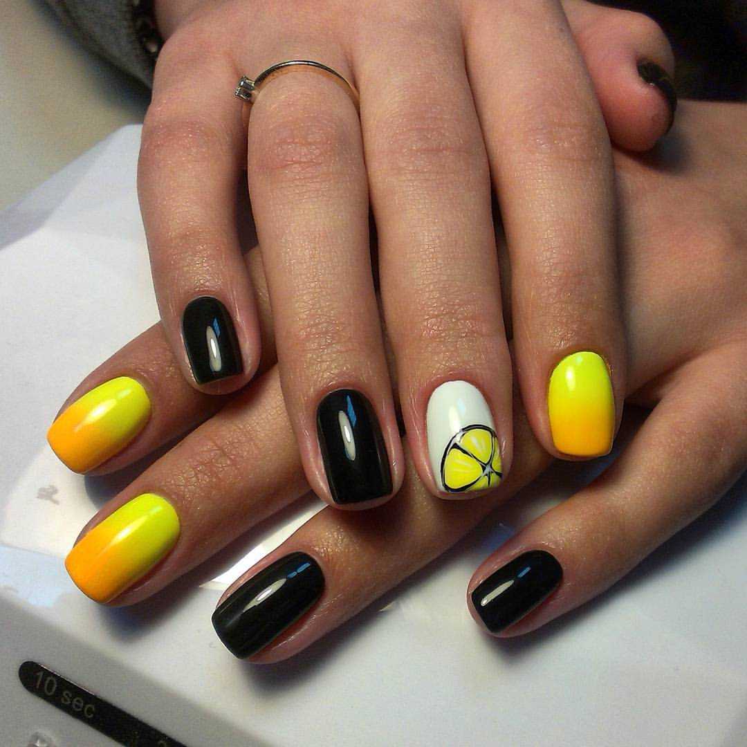 Черно-желтый градиент на ногтях 2022 фото новинки