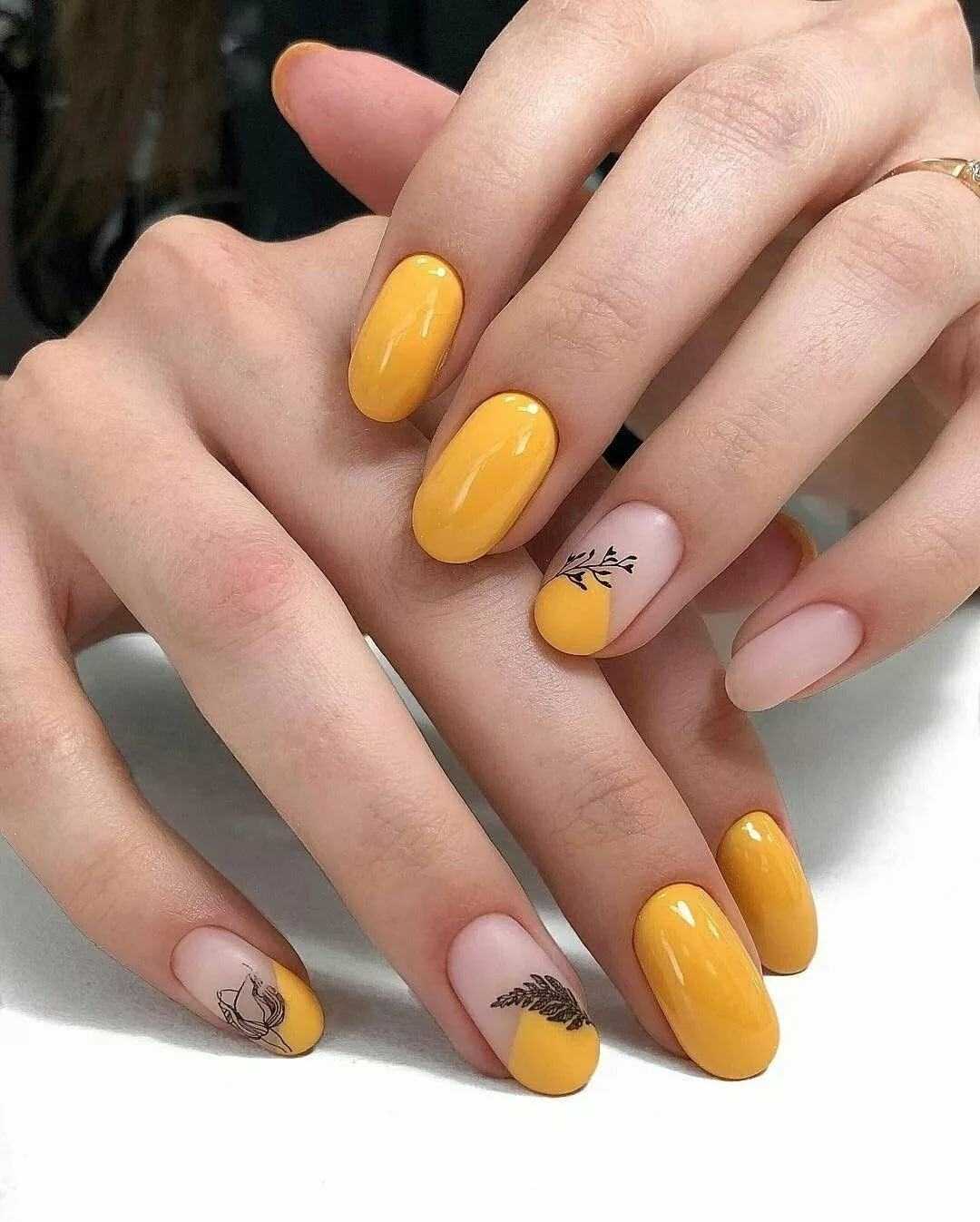 #7 Маникюр горчичного цвета 2020