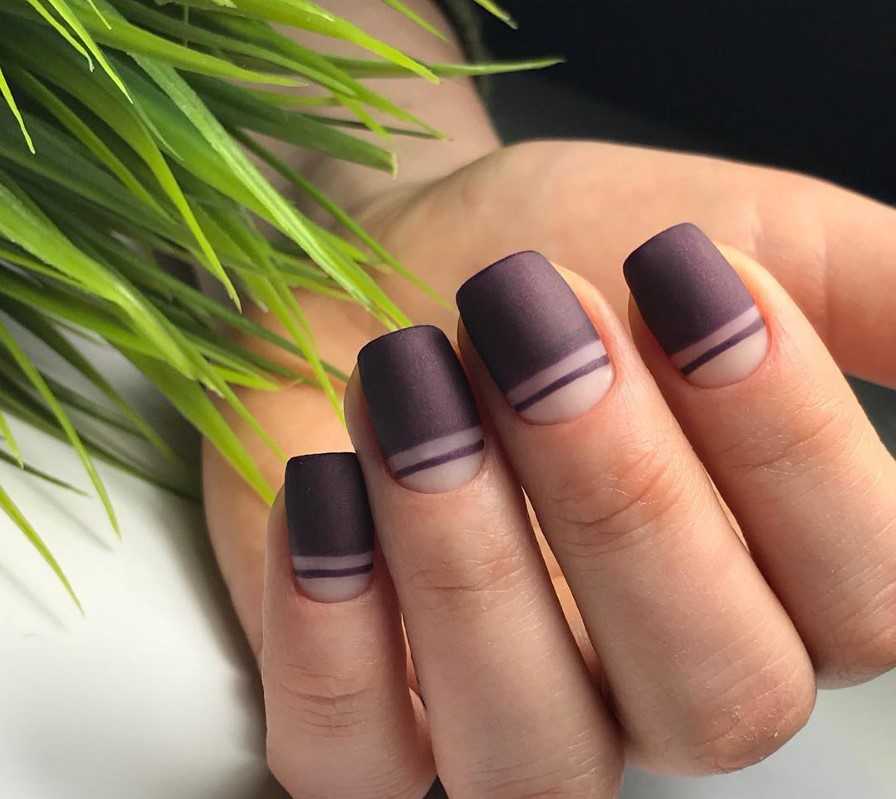 Сочетание матового и глянцевого маникюра – один из наиболее удачных вариантов в современном нейл-арте. Используются преимущественно темные цвета. Дизайнеры выделяют три основных категории: