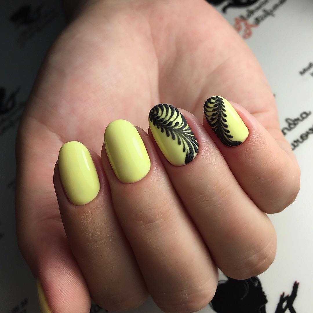 Сочетание желтого и черного – одно из самых заметных и оригинальных в нейл-дизайне. Черный и желтый в одном нейл-арте смотрится благородно и интересно. С добавлением к желтому цвету черного, маникюр уже лишается той легкости, которая присуща однотонным нейл-артам.