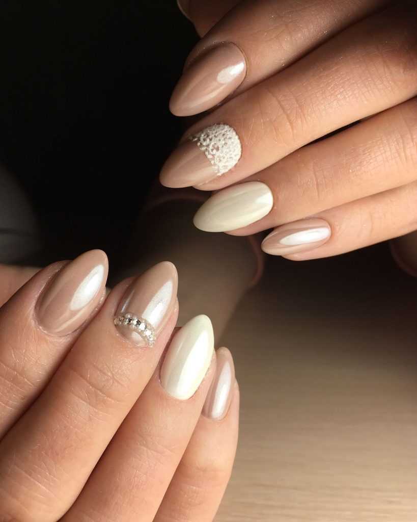 Пастельный миндальный маникюр похож по настроению и эффекту на нюдовый вариант, но имеет более разнообразную цветовую гамму. Модными являются все натуральные оттенки с добавлением белого, который затемняет цвет и создает неповторимую ауру пастельных тонов.