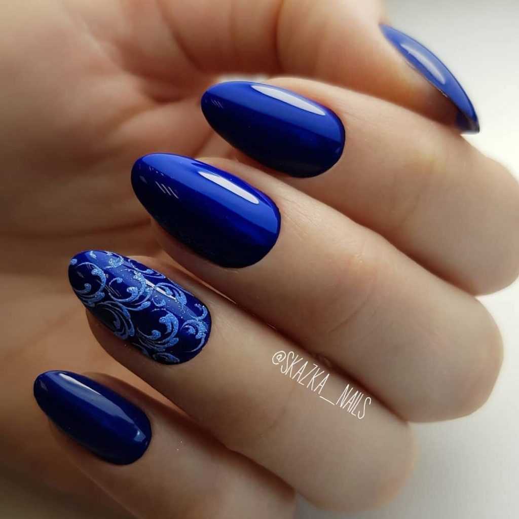 Синий маникюр с дизайном на короткие ногти