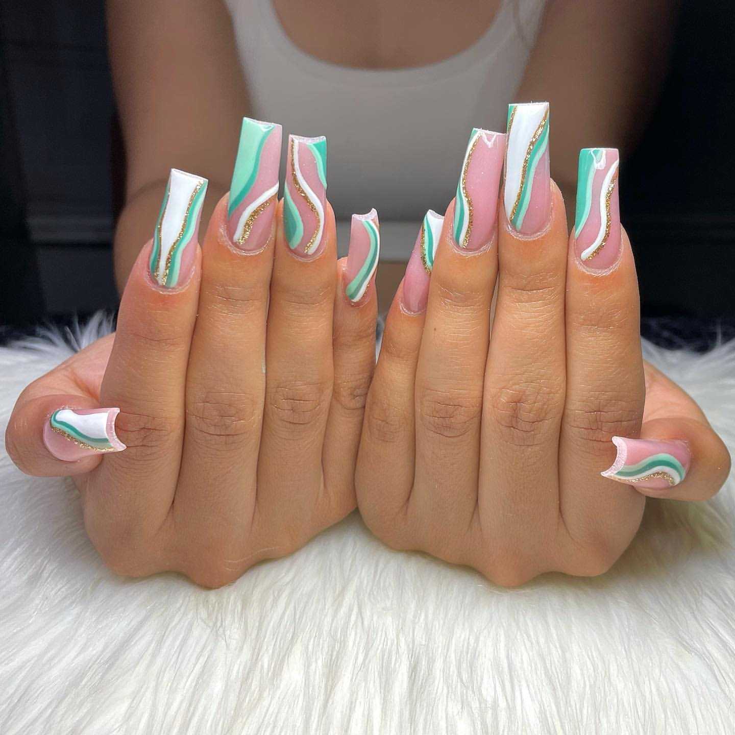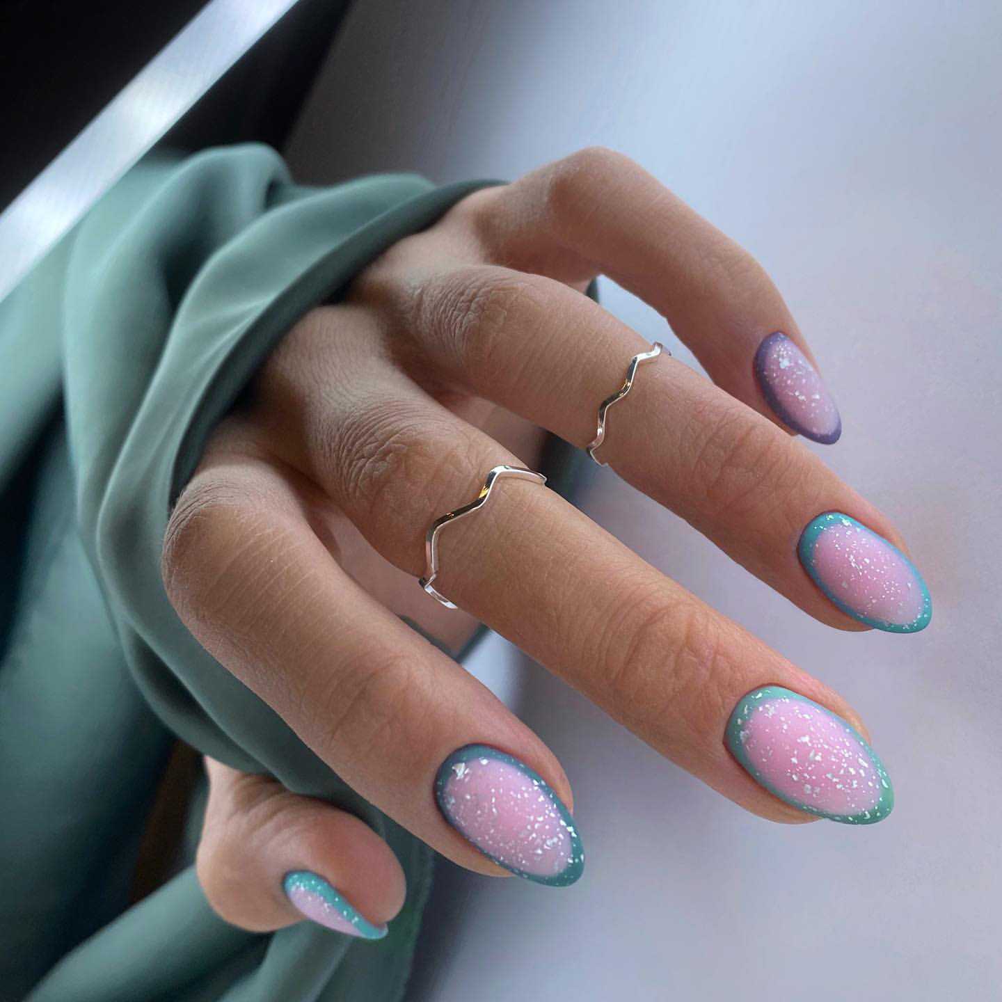 Маникюр мятный с розовым