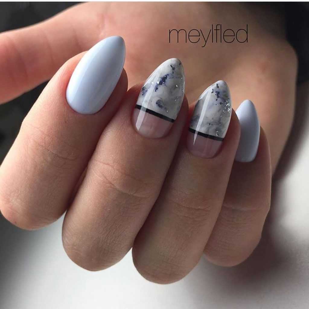 Водный дизайн на миндальной форме ногтей выглядит изумительно. Интересный и обычный способ, чтобы украсить ноготки. Техника настолько проста, что ее сможет освоить даже новичок.