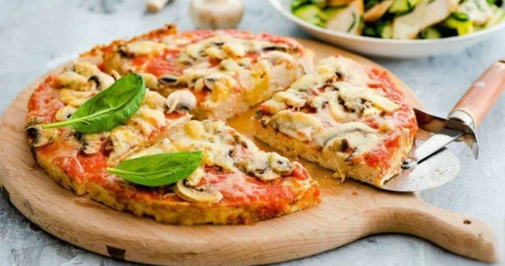 На 2 ст.л. овсяных отрубей берем 1 ст.л. пшеничных отрубей, добавляем 1 яйцо, соду на кончике ножа, соль и 2-3 ст.л. сметаны (зависит от жирности). Тесто должно получиться по консистенции не слишком жидким. Ставим его в микроволновку на 2-3 минуты. Когда выпечется, верх промазываем томатным соусом без сахара, посыпаем грибами. Чтобы закрепить верх, используем небольшой кусочек моцареллы. Натираем сыр на крупной терке и ставим в микроволновку еще на 2-3 минуты. Даем сыру застыть, на что требуется примерно минут 5-10, а затем наслаждаемся диетической пиццей.