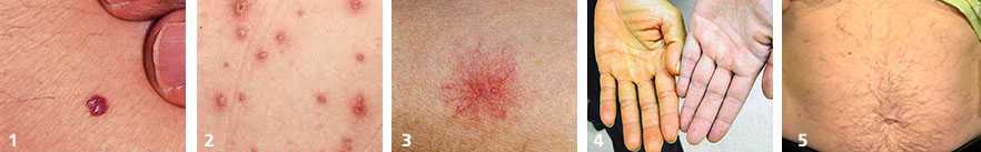 - экскориации — расчесы из-за зуда кожи при гепатите и циррозе
