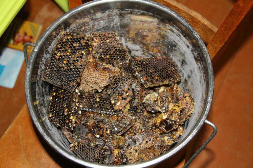 Пергой, как правило, забиваются старые чёрные расплодные соты, жевать которые не очень приятно, так как кроме воска присутствует мерва — рубашки расплодных коконов.