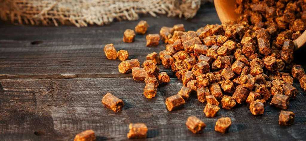 Имеет вид твёрдых шестигранных призмочек — гранул. Очищена от воска и мервы и высушена. Хранится хорошо. Содержание посторонних веществ (воска, мервы) при качественной переработке стремится к нулю. Участие человека — только в очистке перги; состав гранул не меняется.