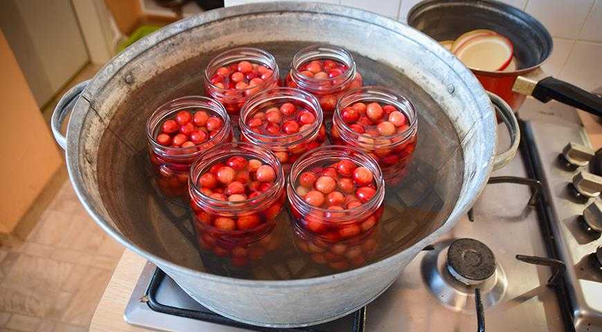 Можно обрабатывать банки с фруктами или овощами, налив в них немного заливки и накрыв стеклянными крышками. После обработки в течение 2-3 минут выньте банки, заполните кипящей маринадом или сиропом до краев и быстро закатайте. Банки поставьте на полотенце вверх дном, переворачивают банки и ставят на хранения после полного остывания.