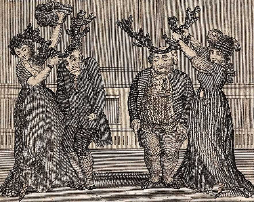 Слово «куколд» происходит от французского cuckoo (bird), что значит «кукушка». Имеется в виду свойство кукушки подбрасывать своё потомство в чужие гнёзда.Долгое время, ещё с 14 века, слово использовалось в научной литературе, для описания особей, воспитывающих не своих детей, затем оно плавно перетекло в поэзию. Одним из популяризаторов стал Уильям Шекспир, словом «куколд» он обозначал моральные метания мужей, сомневающихся — а не изменяет ли им жена? Именно в тот момент слово и связалось намертво с другим понятием — «рогоносец».Рогоносец это мужчина, которому изменила его возлюбленная. Термин уходит корнями, опять же, в природу, а конкретно — к оленям, поэтому и используются для изображений именно оленьи рога.