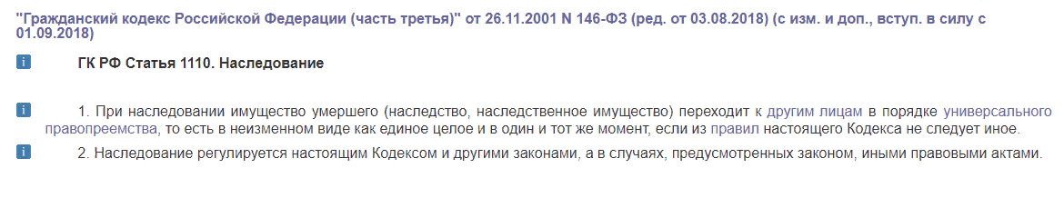 Вышеуказанный нормативно-правовой акт кратко расписывает понятие наследства. Фактически процедура представляет собой один из вариантов защиты имущественных прав собственника в случае смерти. В результате этого события происходит утрата всех прав и обязанностей. В законодательстве установлен круг правопреемников, которые имеют право получить юридические правоотношения, в которых ранее состоял собственник.