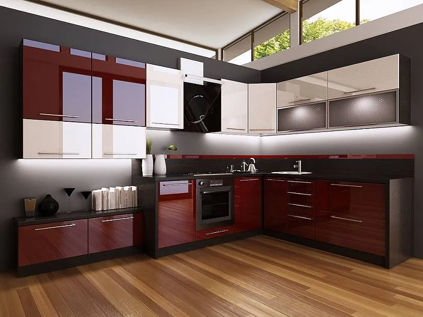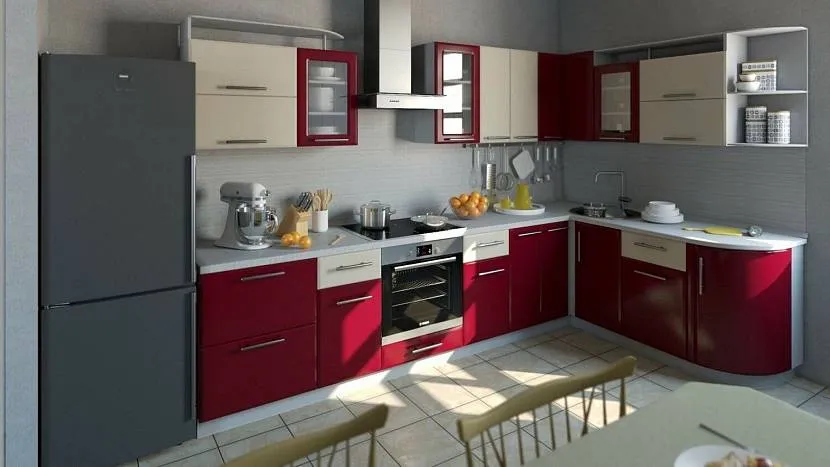 Бежевый цвет очень теплый и мягкий. Он придает комнате особое ощущение домашнего уюта, а ведь на кухне так приятно собраться всей семьей, отдохнуть после рабочего дня. Сочетание приятного «беж» с огненным и страстным бордо выглядит «вкусно». При этом можно соединять эти цвета в любой интерпретации: при оформлении фасадов, декором натуральными деревянными вставками, используя бежевый оттенок в качестве основного цвета и наоборот.