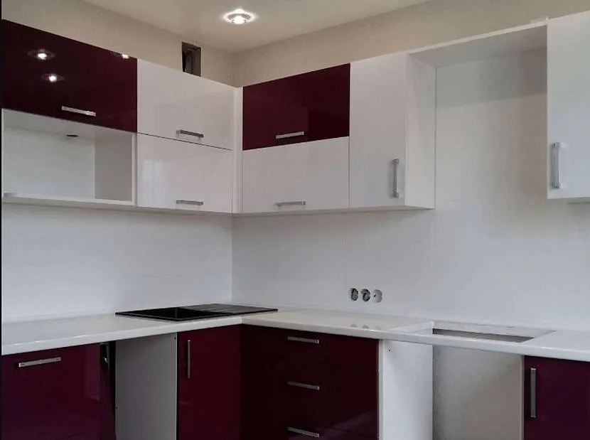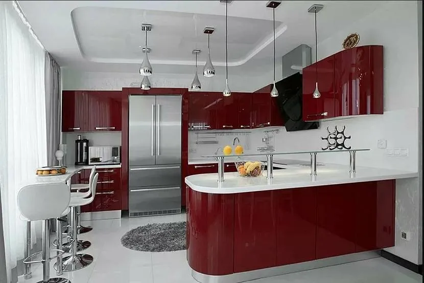 Для комнаты в любом стиле такое сочетание будет в приоритете. Белый цвет выгодно подчеркивает любой, расположенный рядом, оттенок, придает ему насыщенность и глубину. Кроме этого, он визуально расширяет пространство, наполняет комнату воздухом. Кухонная мебель в бело-бордовом оформлении никогда не будет выглядеть скучно. Отличную «картинку» вы получите, расположив полностью бордовую кухню на фоне белой стены. Отлично выглядит кухня белый верх, бордовый низ, это нарядно, празднично. Если чисто белый кажется вам слишком стерильным, попробуйте заменить его на ванильный оттенок.