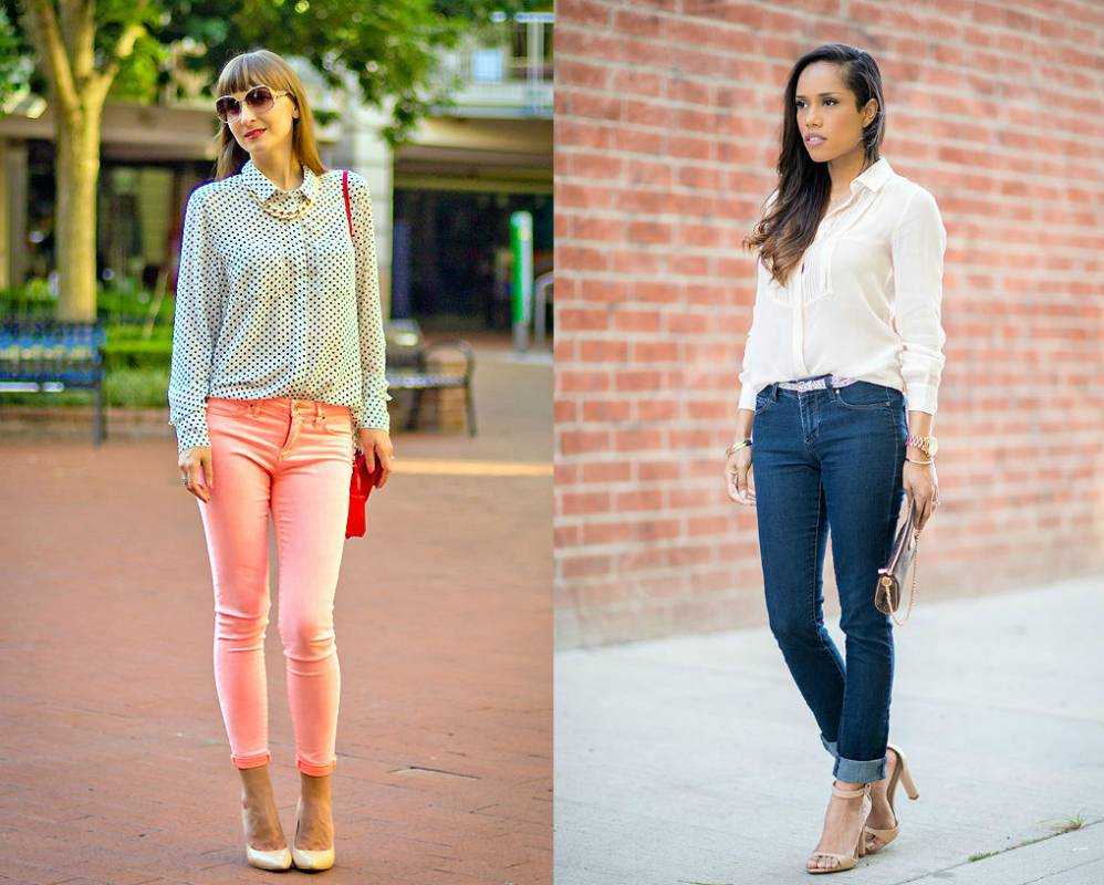 Например, джинсы насыщенного синего цвета отлично будут смотреться с белой блузкой. Такой look подойдет как для романтического свидания, так и для деловой встречи.