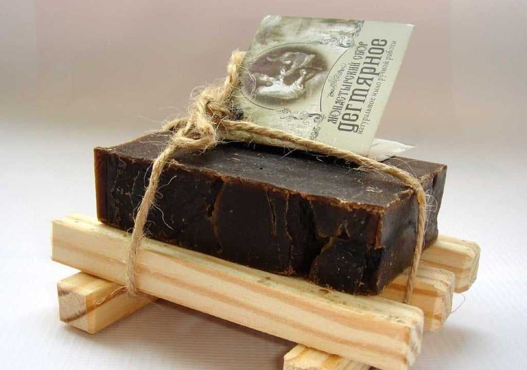 Мыло превращают в мыльную стружку с помощью терки, кладут в кастрюлю и ставят на водяную баню. Постепенно добавляют деготь до получения однородной массы. Смесь снимают с огня, охлаждают и настаивают 2-3 дня.
