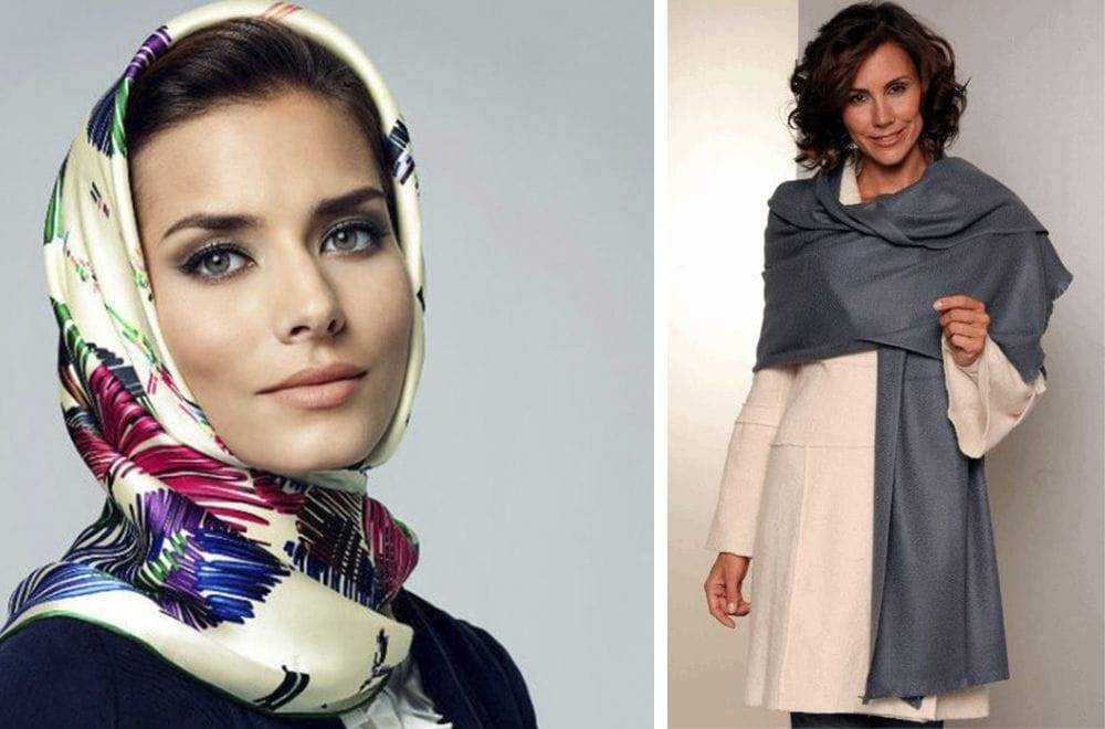 - Косынка. Применяется не для защиты от холодной погоды, а как модный аксессуар, добавляющий неповторимую деталь к образу. Если одежда кажется серой и скучной, ощущение незавершенности можно устранить с помощью правильно подобранной косынки.