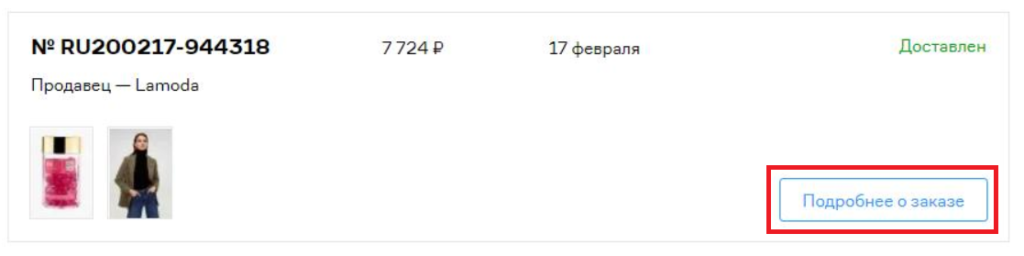 - Выберите заказ с товаром, который вы хотите вернуть, и нажмите «Подробнее о заказе».