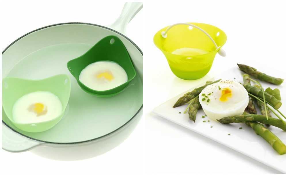 Можно приобрести и специальные кухонные девайсы, в которых сварить яйцо пашот удобней. Они имеют вид пластиковых емкостей, в которых яичко помещается в воду. Но и вышеописанные способы позволят вам приготовить яйцо пашот идеально с первого раза.