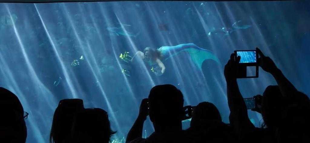 Русалка Ханна плавает с разными видами подводных обитателей океанов: черепахами, скатами, рыбами, дельфинами, тюленями, китами и даже акулами: