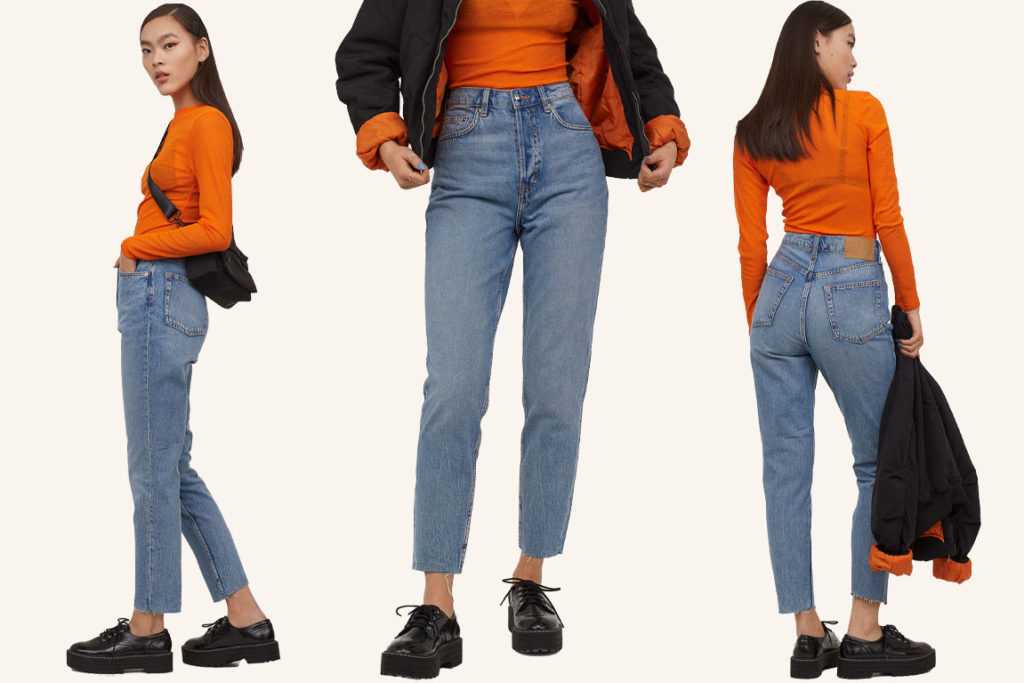 Джинсы с высокой посадкой, более свободные в районе живота, попы и бёдер и немного заужены к низу. Это позволяет скрыть нюансы фигуры. Мамджинсы одни из самых удобных моделей для девушек, возможно, поэтому они так называются.