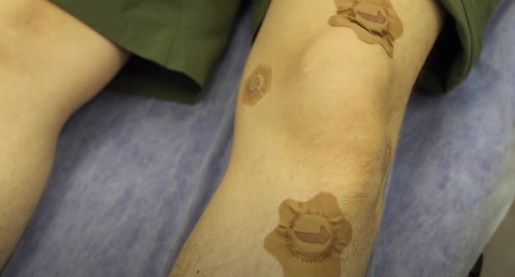 Магнитотейпинг назначается после эндопротезирования коленного сустава. Улучшает кровообращение, обеспечивается отток жидкости (устраняется отек), запускаются восстановительные процессы.