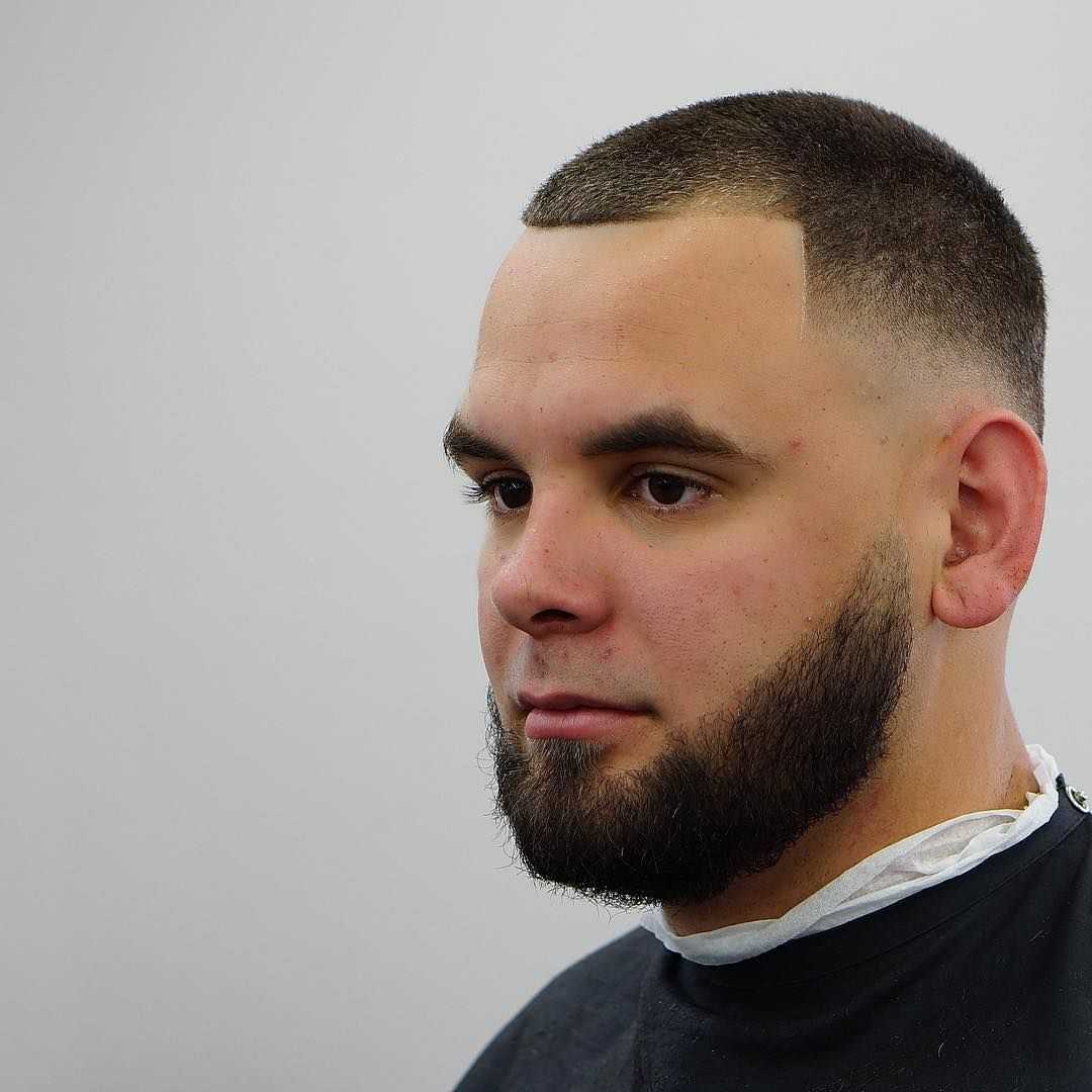 Эта стрижка всегда создавалась для призывников, здесь волосы снимаются машинкой до длины в 2 мм. Поддерживать аккуратность стрижки весьма просто.