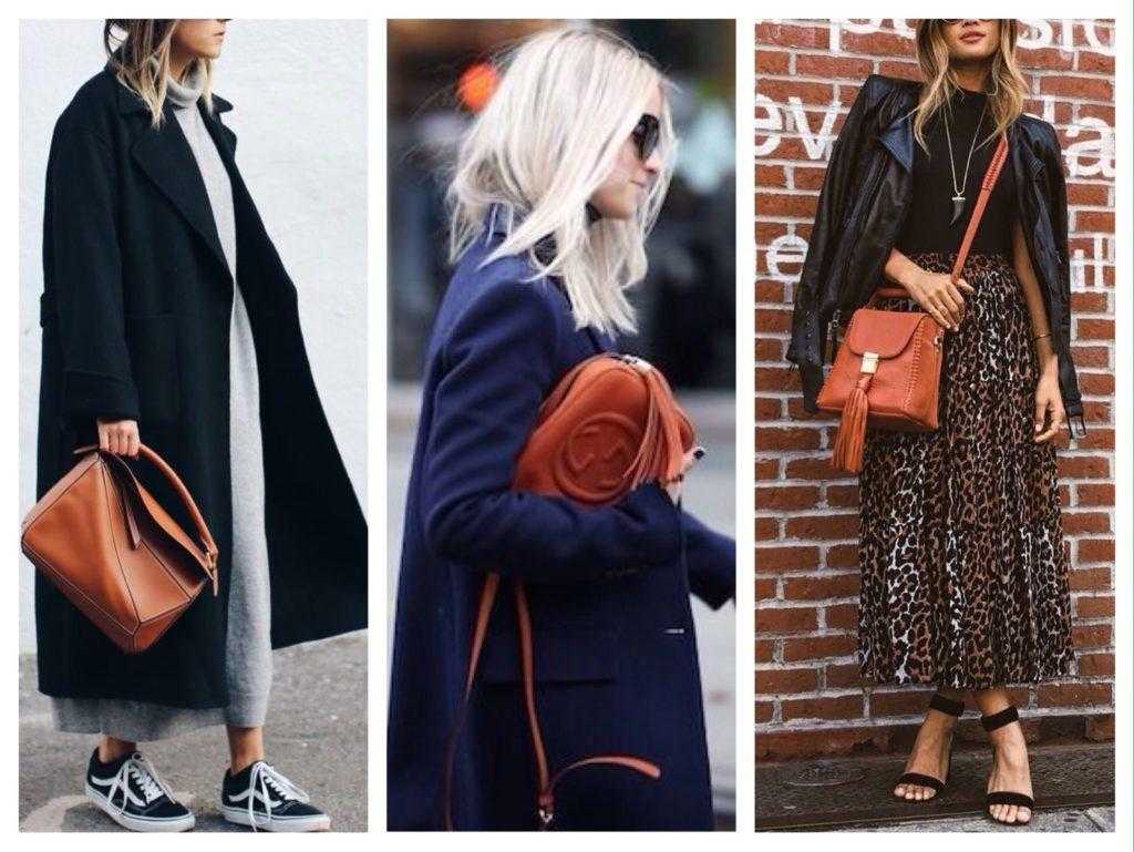 Сумки кирпичного цвета — яркий акцент в комплекте.