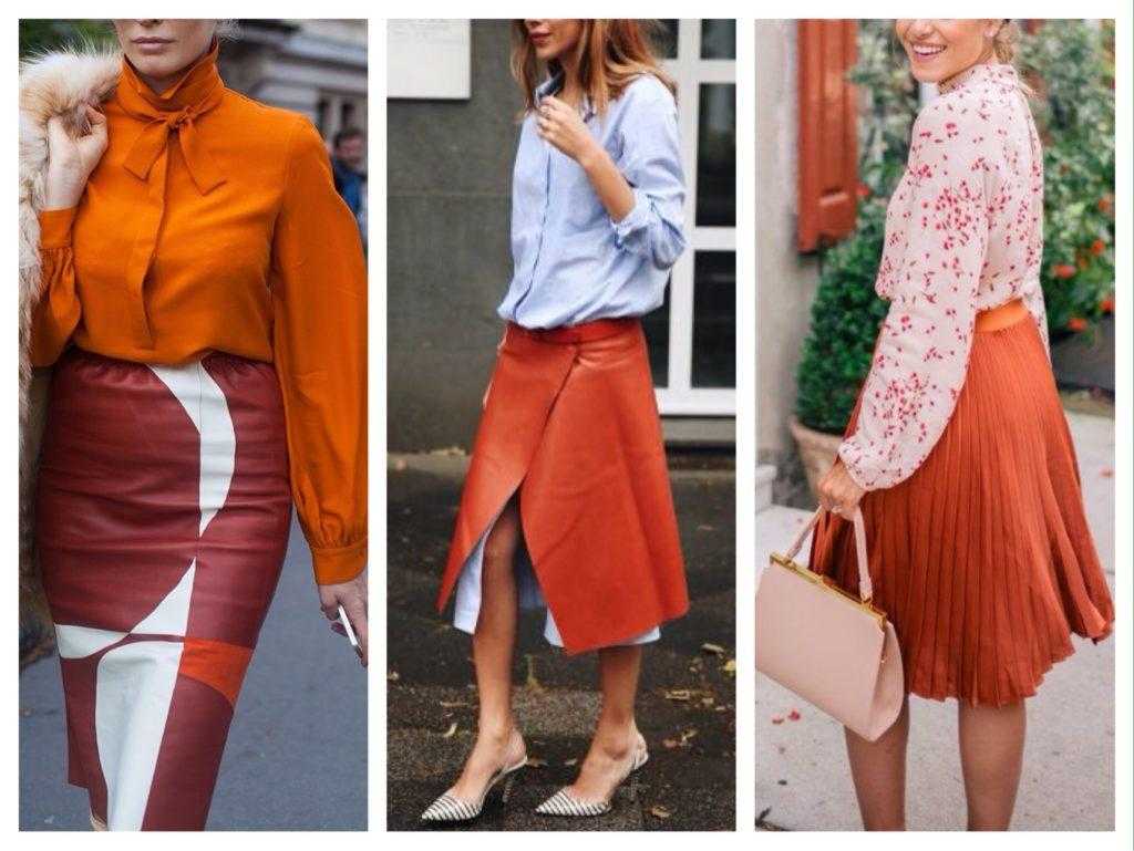 Юбка любого силуэта в терракотовом исполнении прекрасно впишется в летне-осенние комплекты.