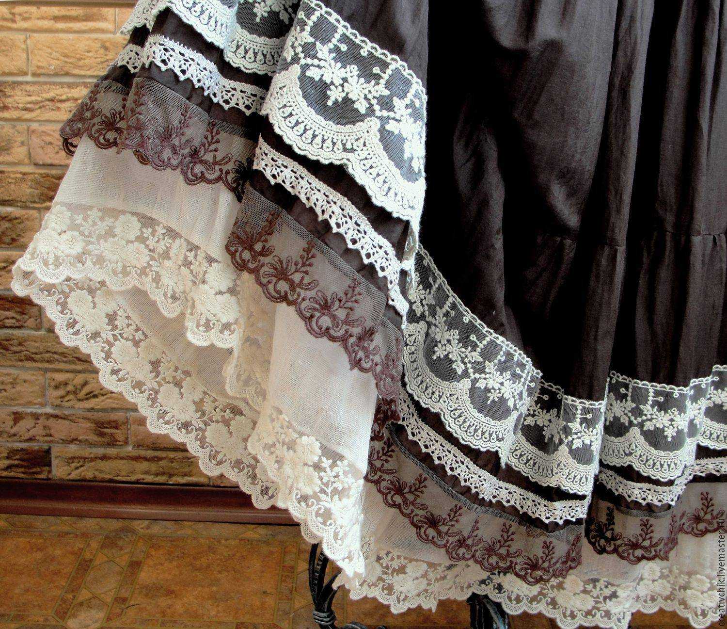 - кружевные оборки на грубой холщовой ткани