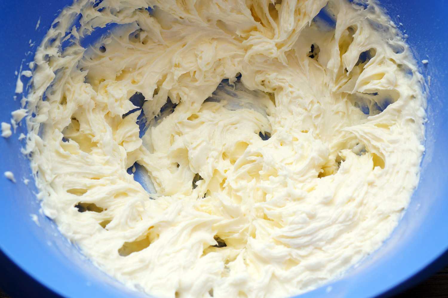 - Скорость взбивания ингредиентов при замесе. Если лопасти миксера или венчик будут двигаться слишком быстро и долго, то можно получить расслаивание структуры. Независимо от состава, крем чиз нужно взбивать медленно и аккуратно, чтобы получить однородность массы без расслоения ингредиентов.